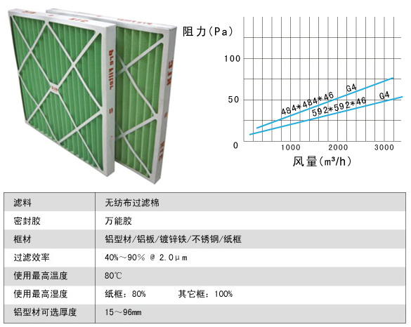 紙框折疊式初效過(guò)濾器風(fēng)阻及運(yùn)行條件說(shuō)明