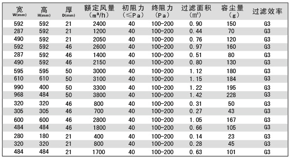 用戶選購指南-耐高溫初效過濾器技術參數