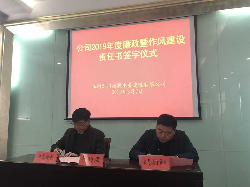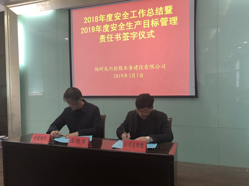 為切實(shí)加強(qiáng)和維護(hù)好公司一年一度的安全和諧與穩(wěn)定,層層落實(shí)好公司的各項(xiàng)廉政暨作風(fēng)建設(shè)責(zé)任,深入推進(jìn)公司黨風(fēng)廉政建設(shè)、反腐敗和安全工作,3月7日下午,揚(yáng)州龍川水務(wù)公司舉行了2019年度安全生產(chǎn)目標(biāo)管理責(zé)任書和廉政暨作風(fēng)建設(shè)責(zé)任書簽訂儀式。公司黨政領(lǐng)導(dǎo)班子全體成員及各分公司和各部門所有負(fù)責(zé)同志都參加了會議。