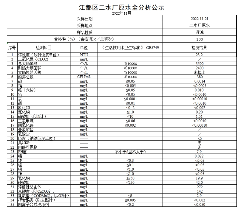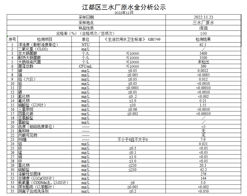 水質(zhì)公示