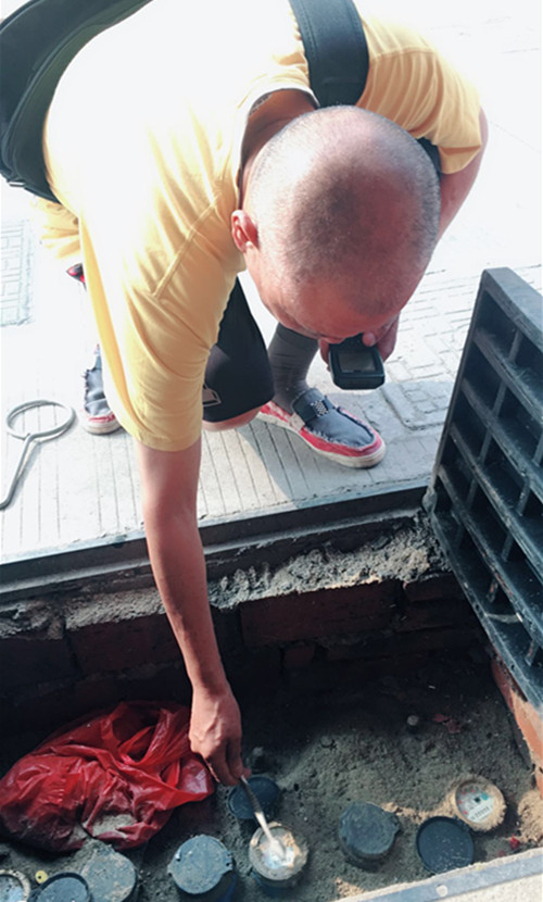 圖為:基層一線抄表人員在高溫下挨家挨戶開展抄表計量工作。