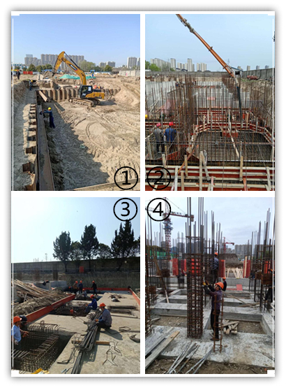 圖④為脫水機房設備基礎底板施工結束鋼筋綁扎中