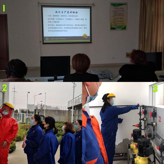 以邵伯污水廠為例,該廠結(jié)合自身工作實際,組織污水運營工學習次氯酸鈉的特性、消殺毒原理及如何正確使用防護裝備,熟練掌握次氯酸鈉發(fā)生泄漏時的各項應急處理措施,并在現(xiàn)場實施了一系列演練活動。另組織運營工赴小紀污水處理廠內(nèi)觀看學習安全教育視頻,提高了員工安全防范意識及風險識別能力。
