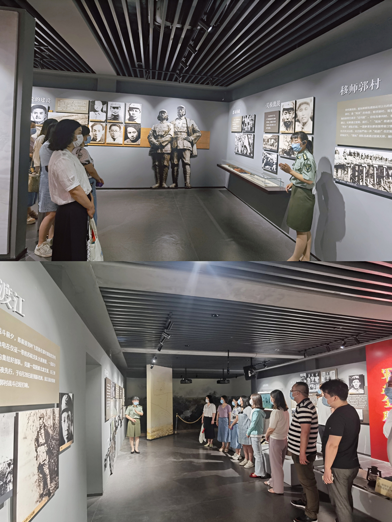 大家在講解員的引領(lǐng)下,先后認真參觀了郭村保衛(wèi)戰(zhàn)紀念館、新四軍蘇北指揮部紀念館,觀看歷史圖片展覽、烈士遺物、模擬戰(zhàn)役場景等,在一件件珍貴歷史文物前,駐足凝視,用心聆聽革命先烈的英勇事跡。展廳里的圖片、文字、油畫、地圖、報紙剪片、音像資料等,再現(xiàn)了郭村保衛(wèi)站當年戰(zhàn)役的場景,震撼人心。