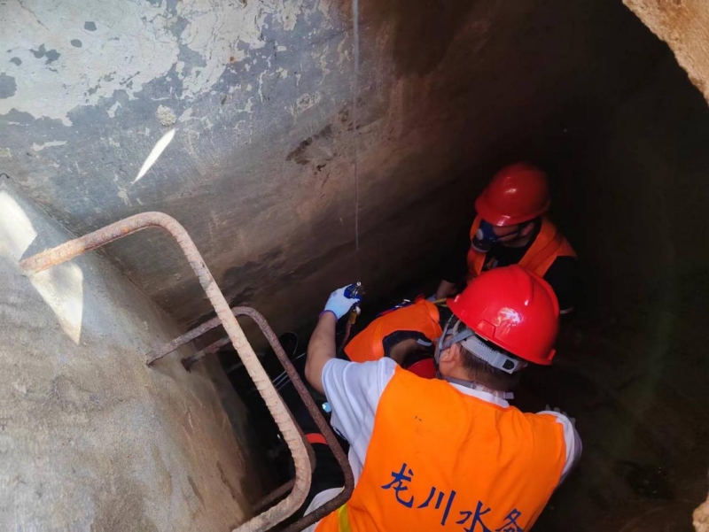 演練內(nèi)容為模擬有限空間事故發(fā)生在丁伙泵站進(jìn)水閥門井現(xiàn)場(chǎng),由于人員違章操作,在未經(jīng)審批的情況下,下井作業(yè)暈倒,情況十分危急,指揮組命令立即啟動(dòng)有限空間應(yīng)急搶修預(yù)案,各小組人員立即趕往現(xiàn)場(chǎng)進(jìn)行救援。