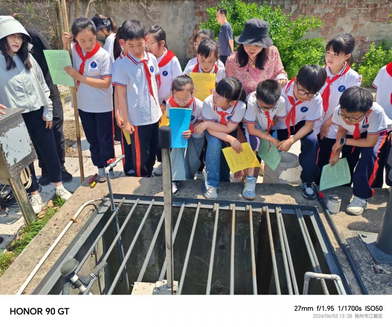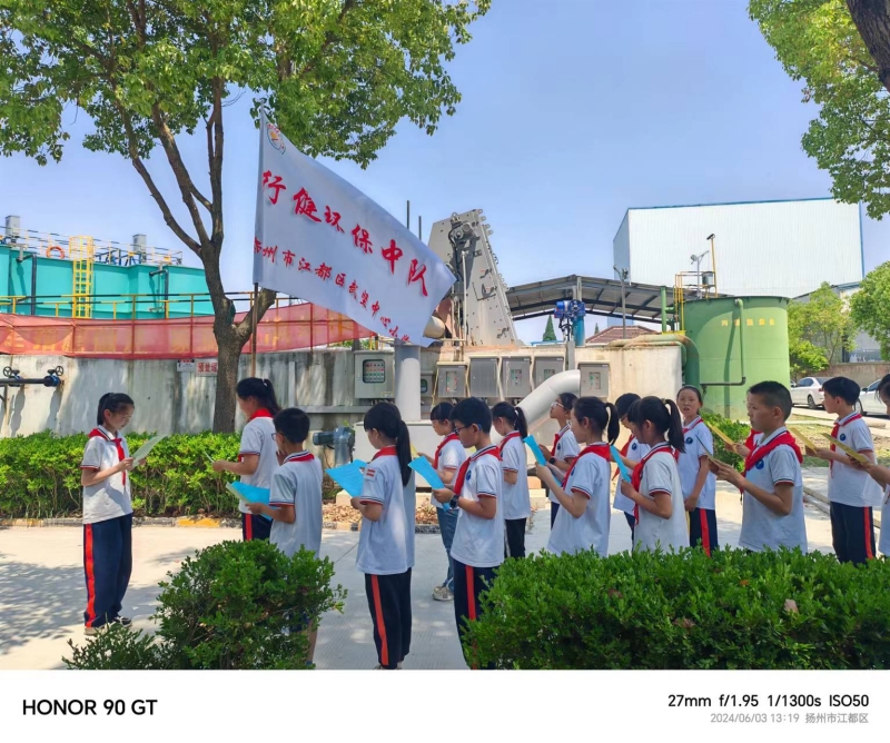 6月3日,江都區(qū)武堅中心小學(xué)“行健環(huán)保中隊”來到我公司下屬武堅污水處理廠,開啟了一場環(huán)保研學(xué)之旅。武堅中心小學(xué)的校長和孩子們一起,首先對污水廠的整體構(gòu)筑物進(jìn)行參觀,隨后他們緊跟廠區(qū)負(fù)責(zé)人張?zhí)礻枏S長的步伐,深入污水處理一線,來到污水處理池組,從進(jìn)水泵房、厭氧池、曝氣池、一體化沉淀池、硝化及反硝化池組、消毒池直到出水口,通過看水的顏色、聞水的氣味,激發(fā)了孩子們滿滿的好奇心,提出了一系列疑問“污水是從哪里來的?”“污水怎么變清澈了?”“處理后的污水又去了哪里?”面對孩子們的好奇心,張?zhí)礻枏S長都一一做出詳細(xì)且易懂的解答,并提出要一點一滴珍惜水資源,保護(hù)好我們的生態(tài)環(huán)境。最后,孩子們紛紛來到中控室,觀看運營操作師傅遠(yuǎn)程操控污水設(shè)備,孩子們感嘆遠(yuǎn)程操作技術(shù)的神奇之余,也深刻體會到了污水處理工作的艱辛與不易。