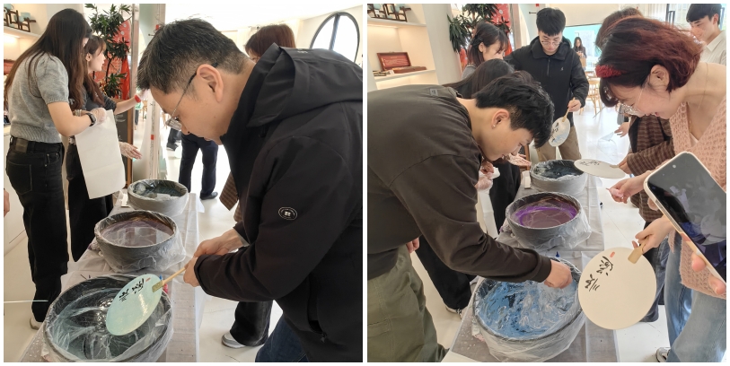 在思想的遠(yuǎn)航之后,活動(dòng)轉(zhuǎn)入非遺文化體驗(yàn)環(huán)節(jié)。青年員工們共同感受流淌在指尖的千年文脈,在專(zhuān)業(yè)老師的指導(dǎo)下體驗(yàn)漆扇制作技藝。在準(zhǔn)備扇面、滴入漆料等一道道工序中,大家不僅領(lǐng)略了傳統(tǒng)工藝的精妙絕倫,更深刻體會(huì)到中華優(yōu)秀傳統(tǒng)文化的深厚底蘊(yùn)。活動(dòng)現(xiàn)場(chǎng)歡聲笑語(yǔ)不斷,一件件獨(dú)具匠心的漆扇作品在巧手中誕生,展現(xiàn)出青年一代對(duì)傳統(tǒng)文化的創(chuàng)新理解。