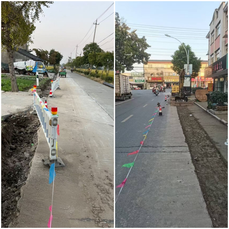 此次宜陵專項債改造區(qū)域管網(wǎng)為原小水廠鋪設的,管網(wǎng)使用年限長,部分管齡超20年,有鐵管、PVC管、PPR管等,管網(wǎng)材質(zhì)參差不齊,且?guī)准倚∷畯S未能統(tǒng)一規(guī)劃管線走線,導致管網(wǎng)末梢水壓低,存在發(fā)現(xiàn)漏點后閥門關閉無法斷水維修等困難。2024年公司前期投入大量人力和物力走現(xiàn)場、測繪、拿方案,最終決定將該區(qū)域老管網(wǎng)全部廢棄,鋪設DN200和DN150球墨鑄鐵管作為供水主管網(wǎng)與區(qū)域供水管網(wǎng)相接,進村入戶支管網(wǎng)采用DN110-DN25PE管鋪設。